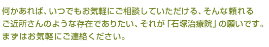 - 患者様の声をしっかりと受け止め、短期回復に向けてじっくりサポート致します。